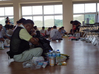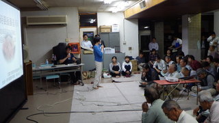 三重大学医学部の磯和先生から災害時要援護者の対策について講義を受けています。災害時要援護者の最大の対策は、自身が要援護者にならないように健康を維持する事、と聞いて大いに納得されているようでした。