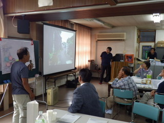 各組で仕上げた地図とタウンウオッチングの際に撮影した写真を見ながら成果を発表します。発表する事により、参加者の全員で課題等を共有する事ができます。