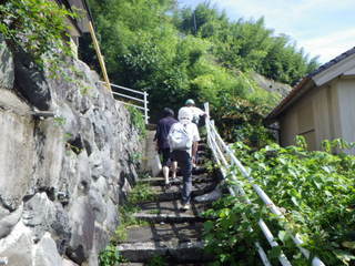 避難経路を確認しながら津波一次避難場所まで歩いて記録を取って行きます。