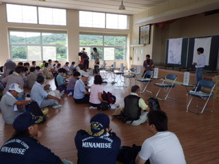 三重大学の川口先生から防災避難訓練計画の立て方について講義を受けています。